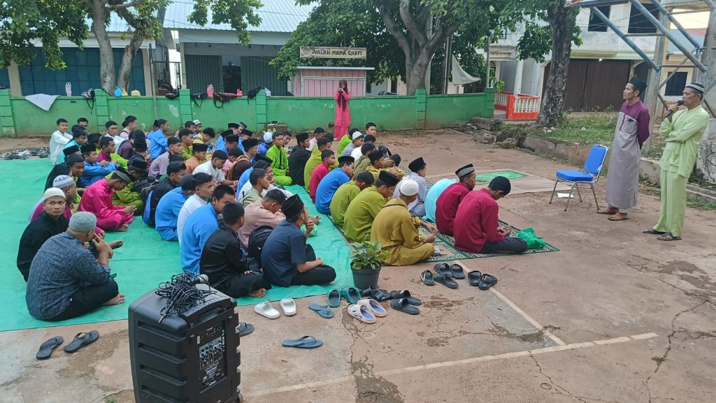 Menjelang waktu berbuka, para siswa mengikuti tausiyah singkat yang memberikan pesan tentang pentingnya berbagi, sabar, dan menjaga akhlak. Ketika adzan Maghrib berkumandang, seluruh peserta membatalkan puasa bersama-sama dengan hidangan takjil yang telah disiapkan. Suasana terasa hangat dan penuh kebersamaan saat semua menikmati makanan.