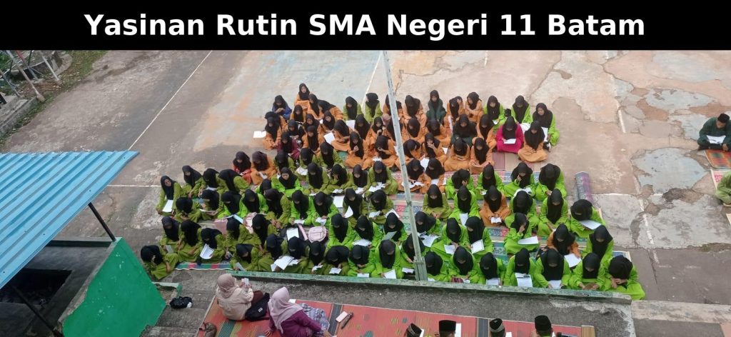 Batam – SMA Negeri 11 Batam kembali melaksanakan kegiatan Yasinan Rutin pada Jumat (8/8/2025) pagi di halaman sekolah. Kegiatan ini diikuti oleh seluruh siswa, guru, serta staf sekolah, sebagai bentuk pembinaan rohani sekaligus mempererat tali silaturahmi antarwarga sekolah.