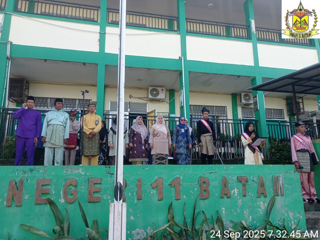 Batam – Seluruh keluarga besar SMA Negeri 11 Batam tampak khidmat mengikuti upacara peringatan Hari Ulang Tahun (HUT) ke-23 Provinsi Kepulauan Riau. Upacara ini dilaksanakan di halaman sekolah pada hari Selasa, 24 September 2025, sebagai wujud penghormatan dan rasa cinta terhadap provinsi yang dijuluki “Bumi Segantang Lada” ini.